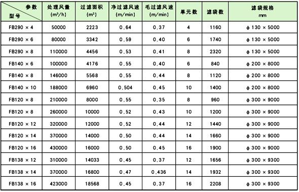 FB型反吹風玻纖大布袋除塵器通常有高溫型和常溫型兩種,高溫型濾袋采用玻纖膨體紗,允許溫度<260℃, 常溫型濾袋采用化學連續纖維, 允許溫度<120℃。 如處理煙氣溫度高于上述濾布的允許使用溫度, 氣體進入收塵器前須進行降溫處理或采用其他耐溫濾料。